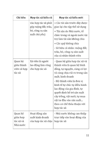 Chỉ tiêu Hợp tác xã kiểu cũ Hợp tác xã kiểu mới