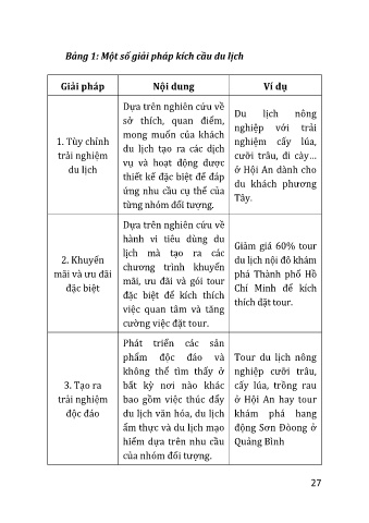 Bảng 1: Một số giải pháp kích cầu du lịch