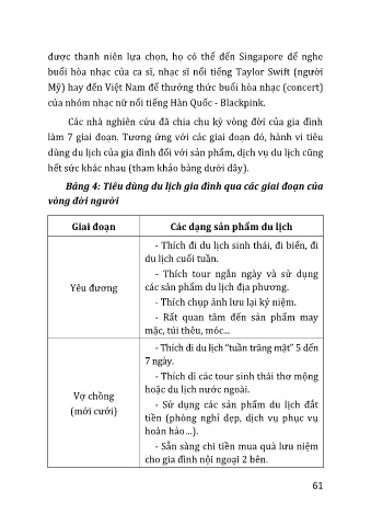 Bảng 4: Tiêu dùng du lịch gia đình qua các giai đoạn của