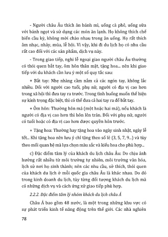 c) Đặc điểm tâm lý của kh|ch du lịch châu Âu: Do chịu ảnh