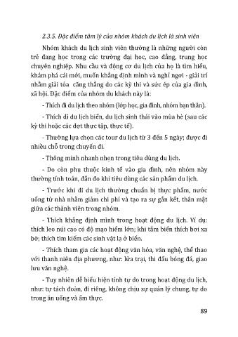 2.3.5. Đặc điểm tâm lý của nhóm khách du lịch là sinh viên