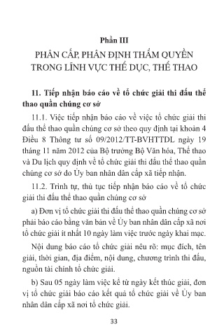 11.1. Việc tiếp nhận báo cáo về việc tổ chức giải thi